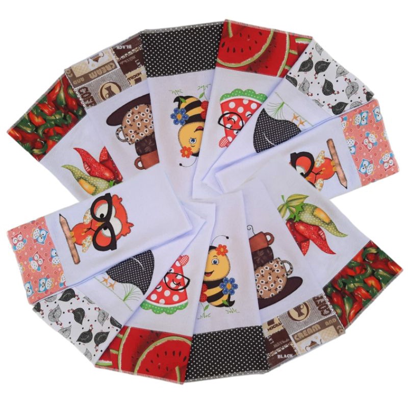 Kit ( 7 Unidades) Pano de prato Bordado patchwork para revenda no