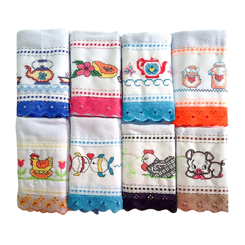 Pano de Prato Bordado Ponto Cruz Kit 10 Peças