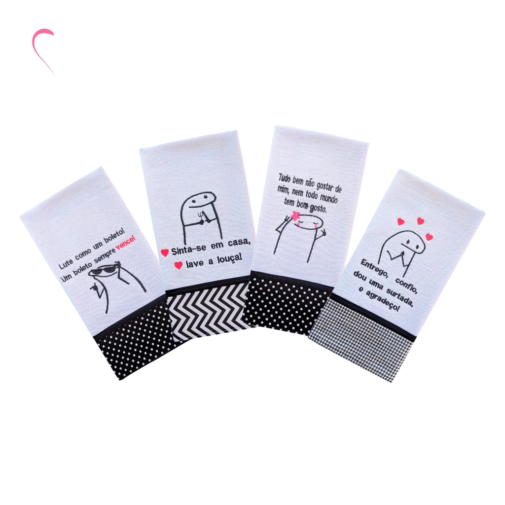 Jogo Pano De Prato Bordado Coleção Humor 100% Algodão - 4 Peças