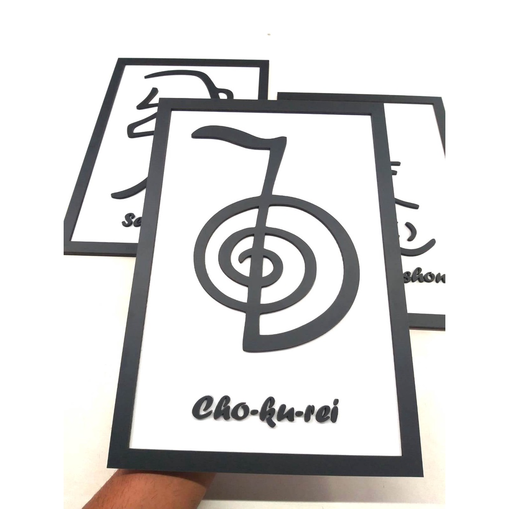 Kit Trio de Quadros em Alto relevo 3D Reiki Chokurei Seiheki Honshazechonen Mdf Quadro Decorativo