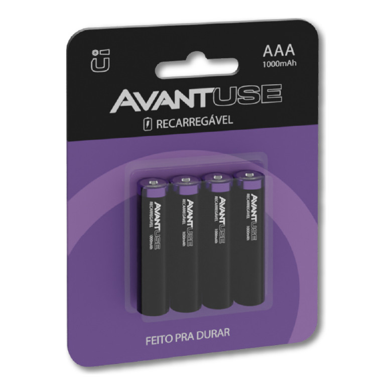 Kit 4 Pilhas Recarregável AAA Palito 1000MAH 1.2V Avant Use
