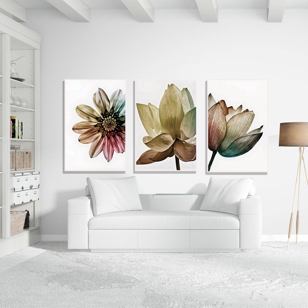 Kit Quadros flores coloridas com borda Decorativos 3 Placas sala quarto hall lindo