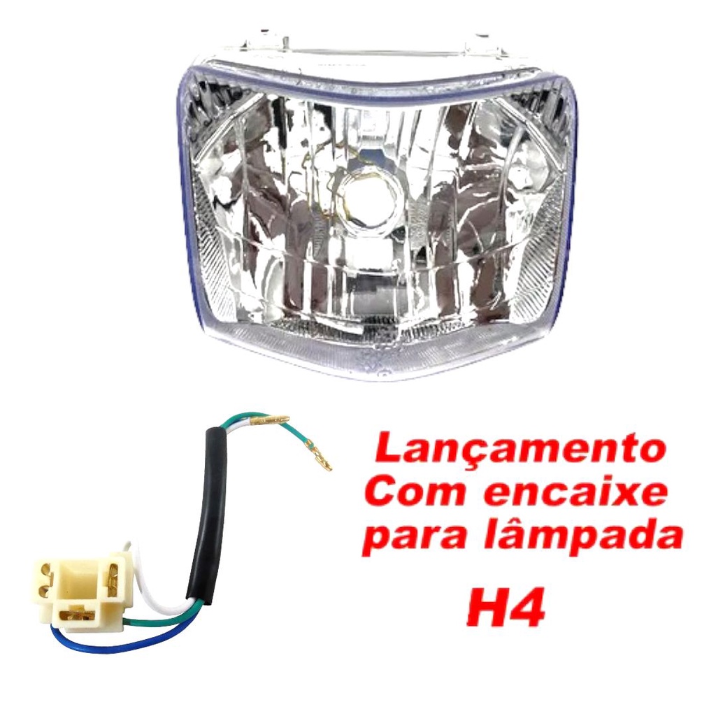Bloco Optico Farol Nxr Bros 150 Ks ES Esd 09 A 12 Pop 100 Com Soquete e Lampada H4