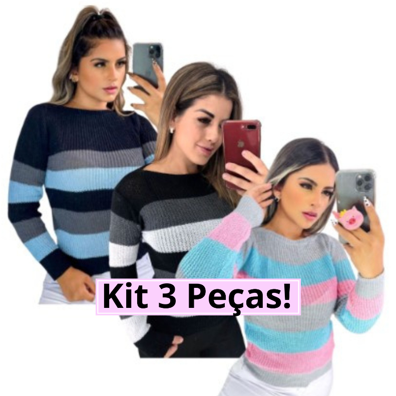 Kit 3 Blusa de Frio Feminina Manga Longa Peças Sortidas