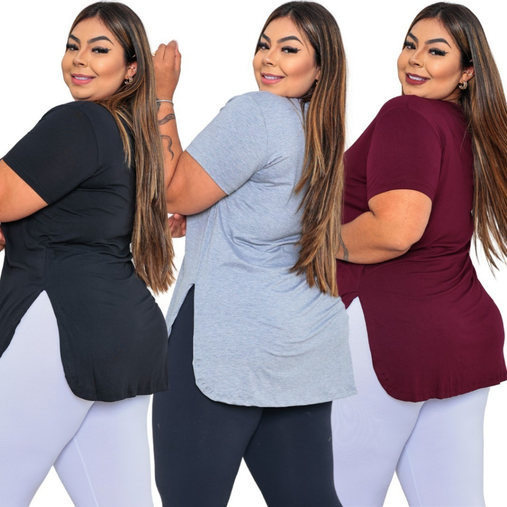 Kit 3 Blusa Feminina Longa Camiseta V Tapa Bumbum Plus Size Vest Legging Moderna