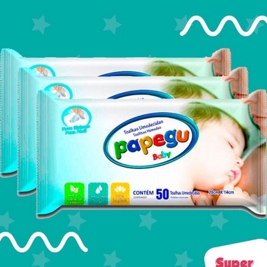 Kit 3 Toalhas Umedecidas Papegu Baby 100 Unidades Sem Alcool Aloe Vera Lenço Umidecido