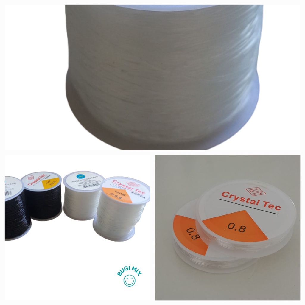 Fio de Silicone 10 e 100 Metros Transparente/Preto Para Artesanato-Pulseiras