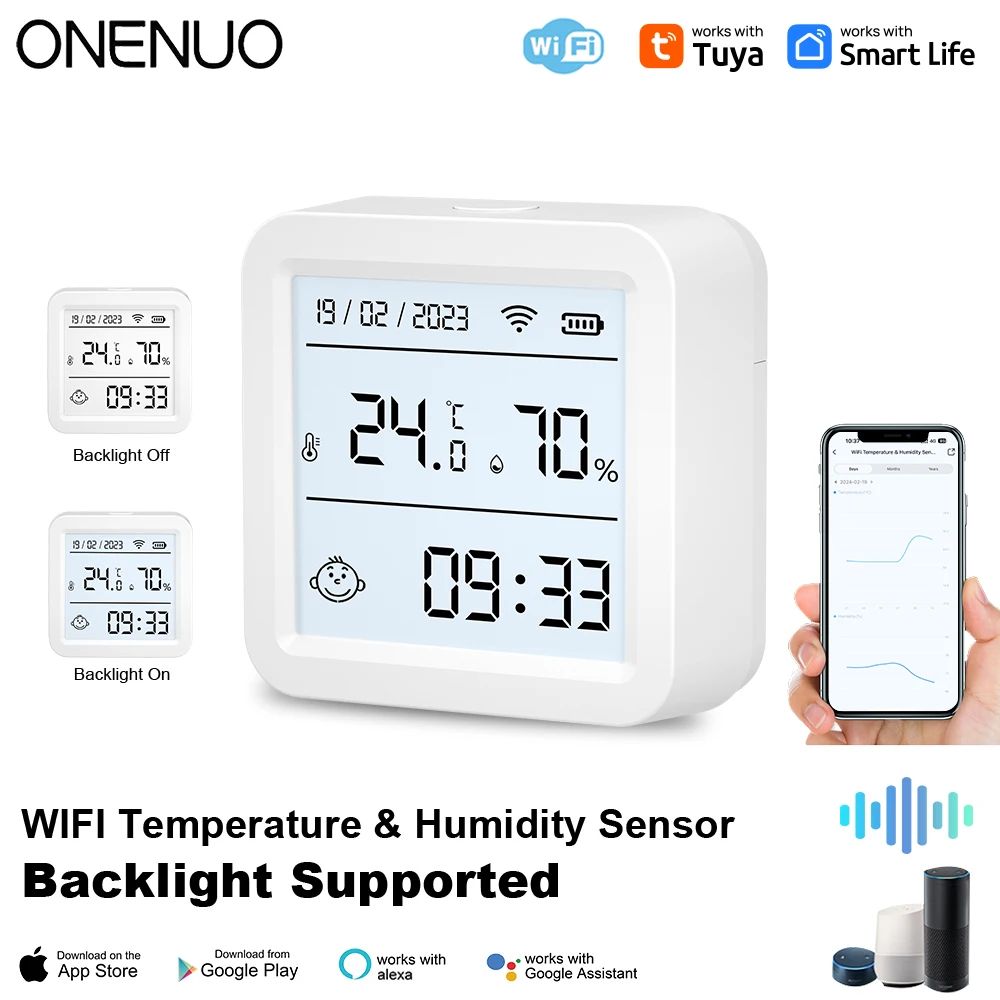 Sensor de Temperatura e Umidade + Pilhas, WiFi, Luz de Fundo, Higrômetro, Termômetro, Suporte Alexa, Google Home Assistant. Sensor com aplicativo compatível.