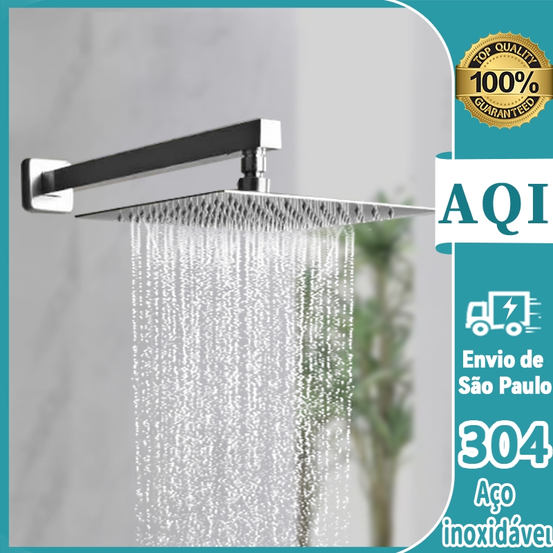 Ducha Chuveiro Inox 304 Quadrado 20x20 cm Com Braço 40cm