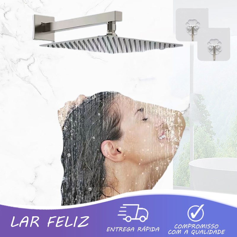 Ducha Chuveiro Quadrado 20x20 em Aço Inox + Braço 40 cm