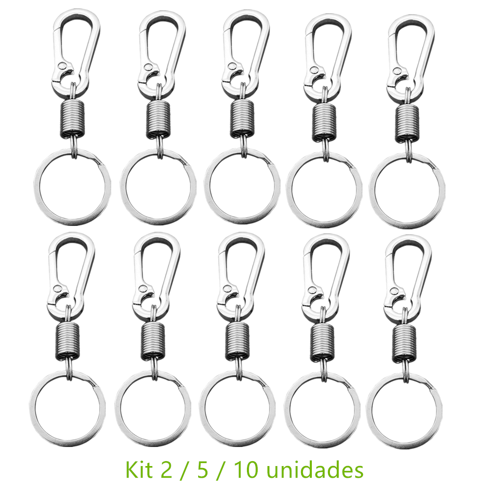 Kit 2 / 5 / 10 Chaveiro mosquetão com mola Argola Prateado Ideal para lembrancinha