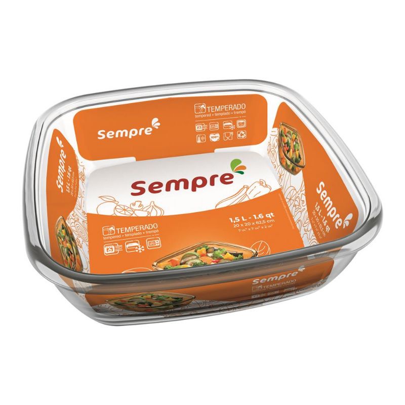 Assadeira Nadir Sempre Quadrada Vidro média 20 cm 1,5 L - 1 peça