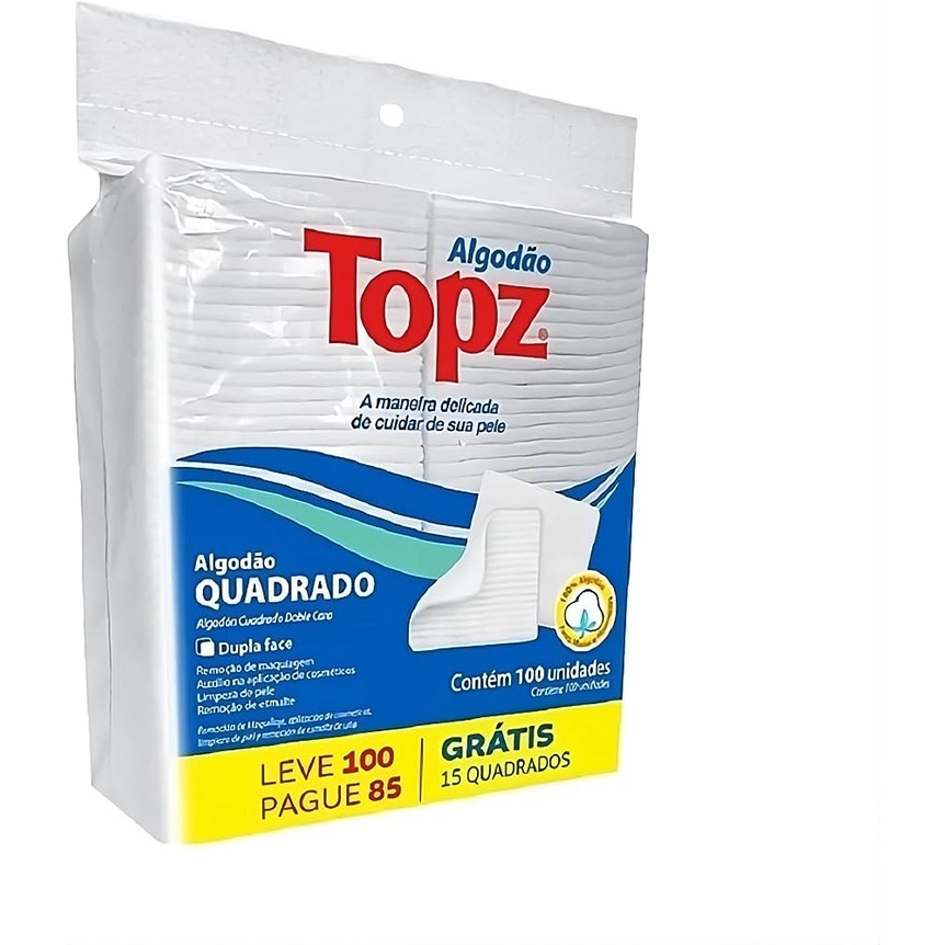 Kit 3 Algodão Topz Quadrado Limpeza Facial Dupla Face Removedor Maquiagem Esmaltes 100un