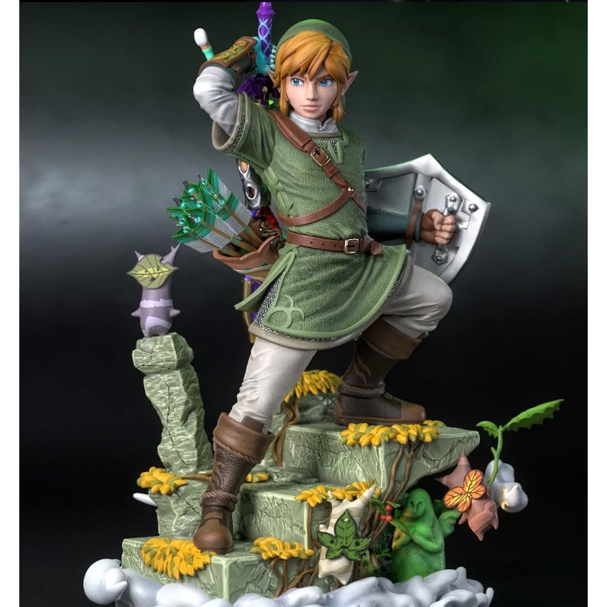 Estátua diorama Link Tears of the Kingdon skin Twilight Princess (pré-venda) com dois escudos