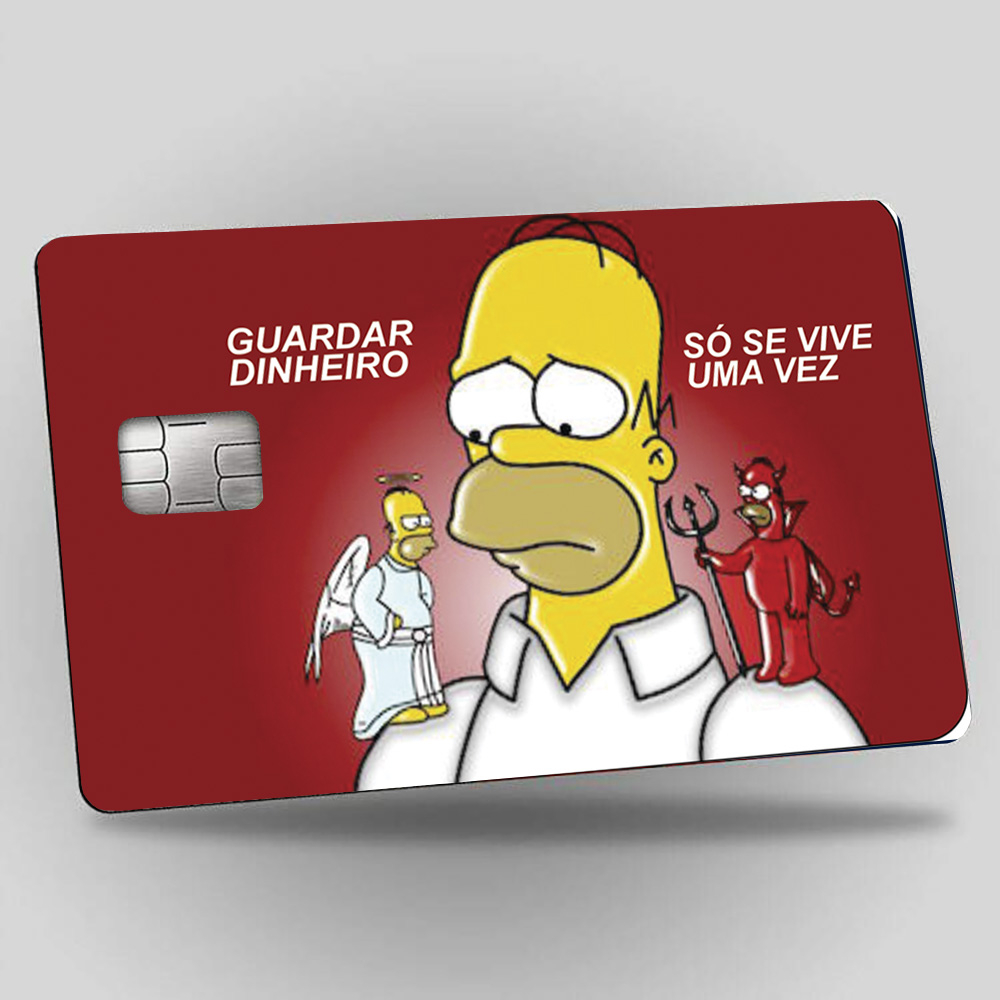 Adesivo para Cartão de Credito Homer Simpsons Demonio e Anjo Meme Debito Credito Vale Alimentação Refeição Skin Proteção