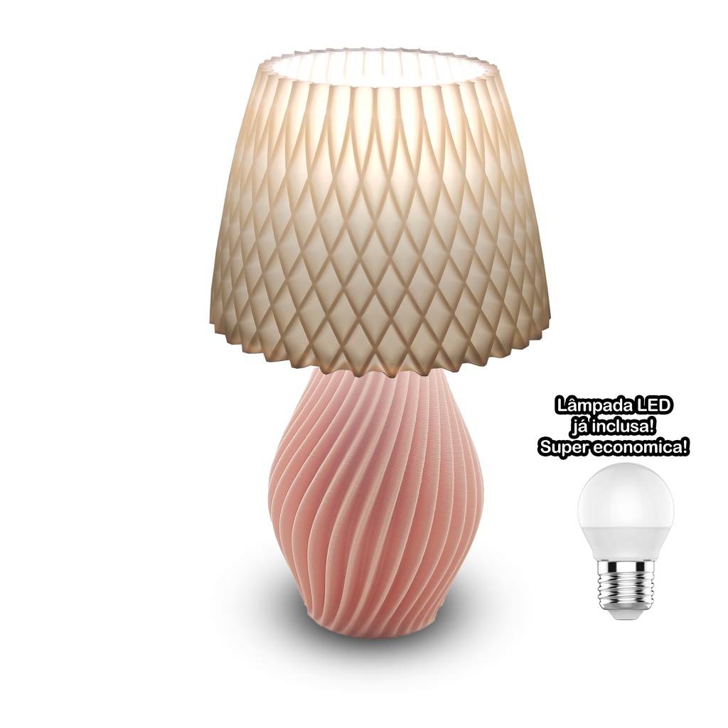 Luminária/Abajur Bivolt Decorativo para mesa e criado mudo - Modelo Exclusivo em Espiral