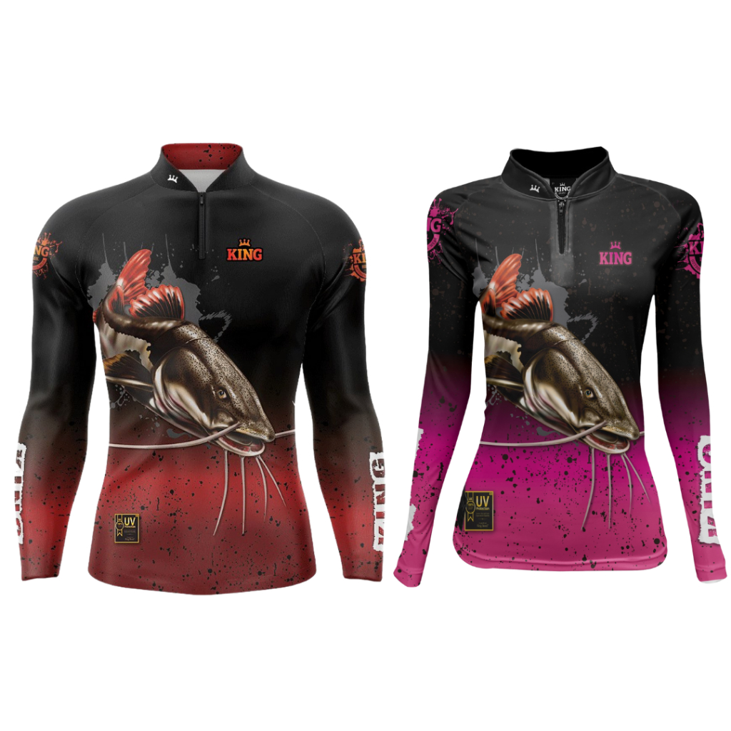 Kit casal camiseta pesca king combo igual pirarara proteção uv+ 50