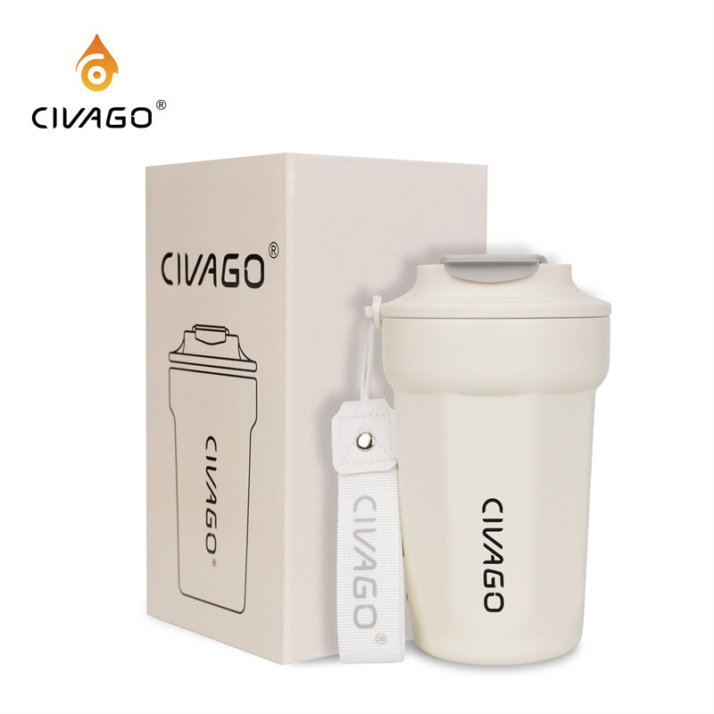 Civago Copo Térmico 380mL Garrafa Térmica Café Chá Revestimento Interno Cerâmico Com Tampa- Branco