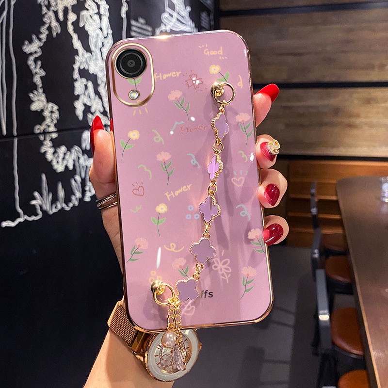 YBD Caixa Telefônica Com Flores De Tela Cheia Galvanizada Para Samsung Galaxy A03 Core A04 A032F Uma Pulseira De Trevo De Quatro Folhas
