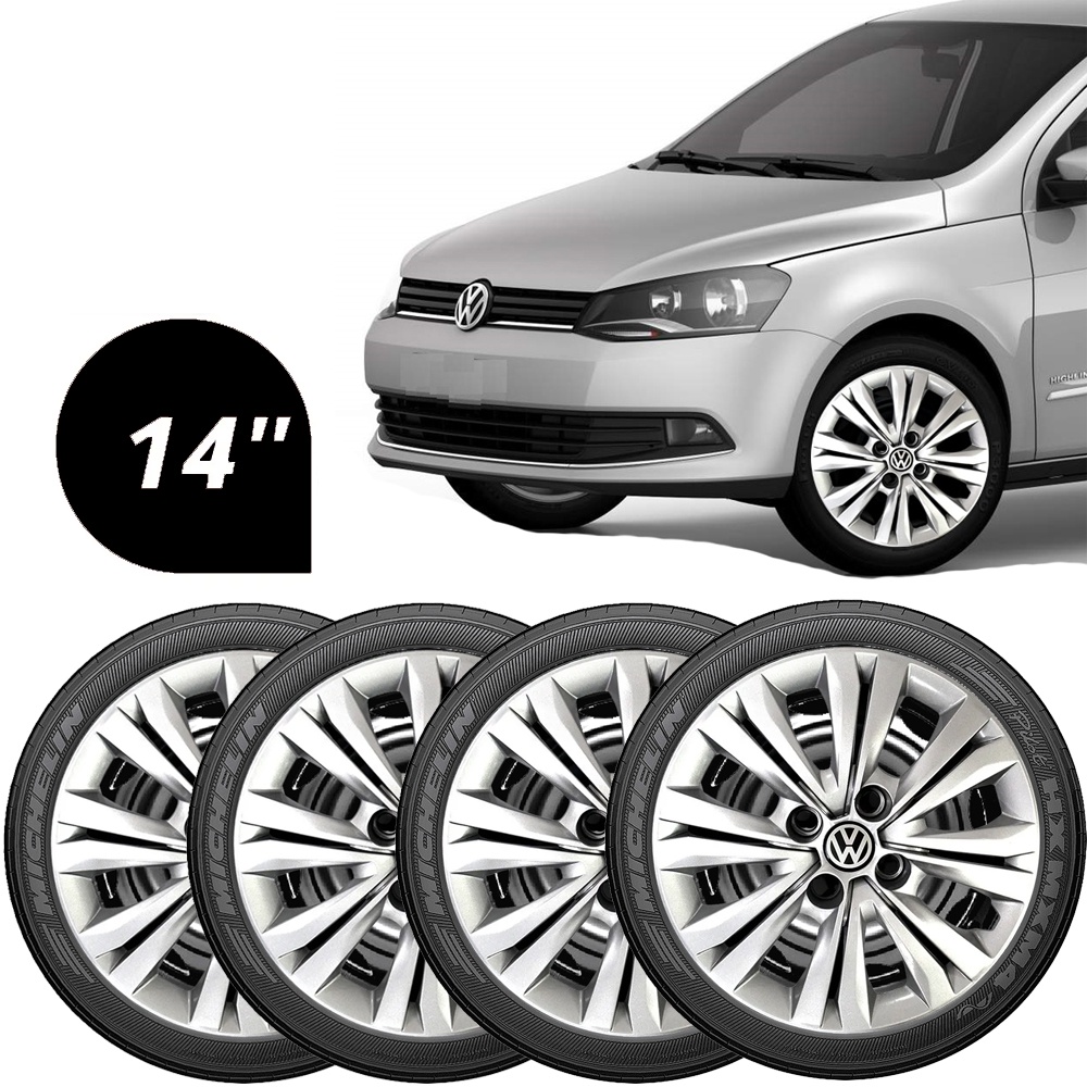 Jogo Calota Vw Gol G3 G4 G5 G6 G7 Aro 14 + Emblema Resinado