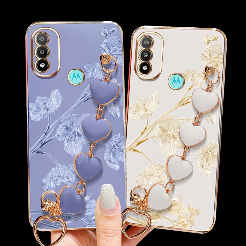YBD Estilo Coreano De Pequeno E Fresco Para A Motorola Moto E20 E40 Edge 20 30 Beautiful Bauhinia Flower Pattern Com Bracelete Do Amor