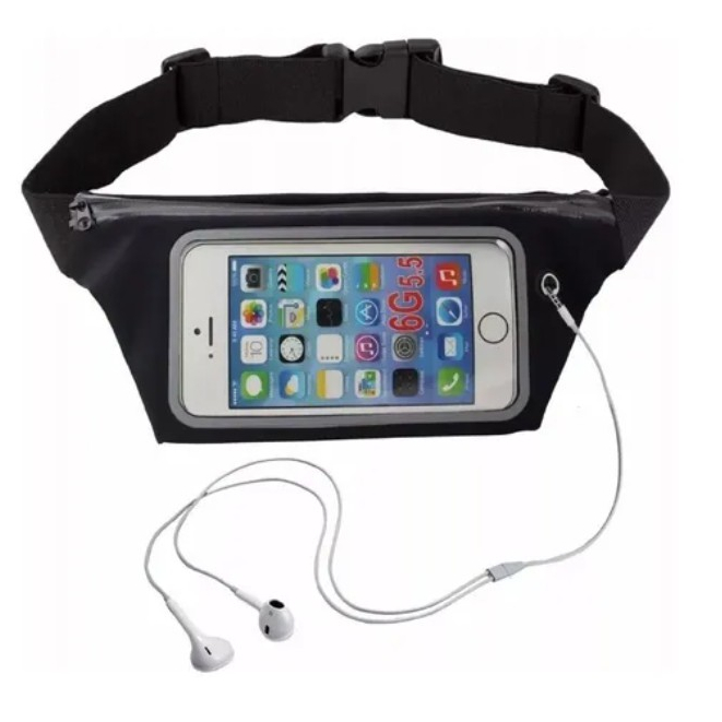 Pochete Esportiva Fitness Corrida Doleira Impermeável Com Bolso Alça + Fone de Ouvido Com Fio