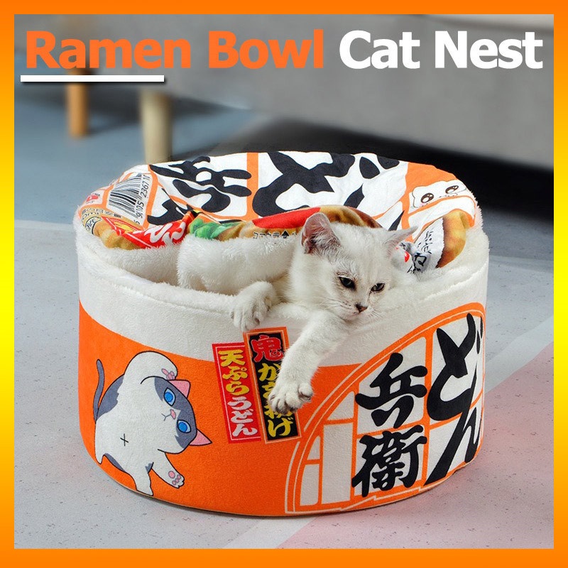Ninho De Gato Com Design De Ramen Bowl Quente De Inverno-Cama Aconchegante E Espessada Para Animais De Estimação Fácil De Limpar