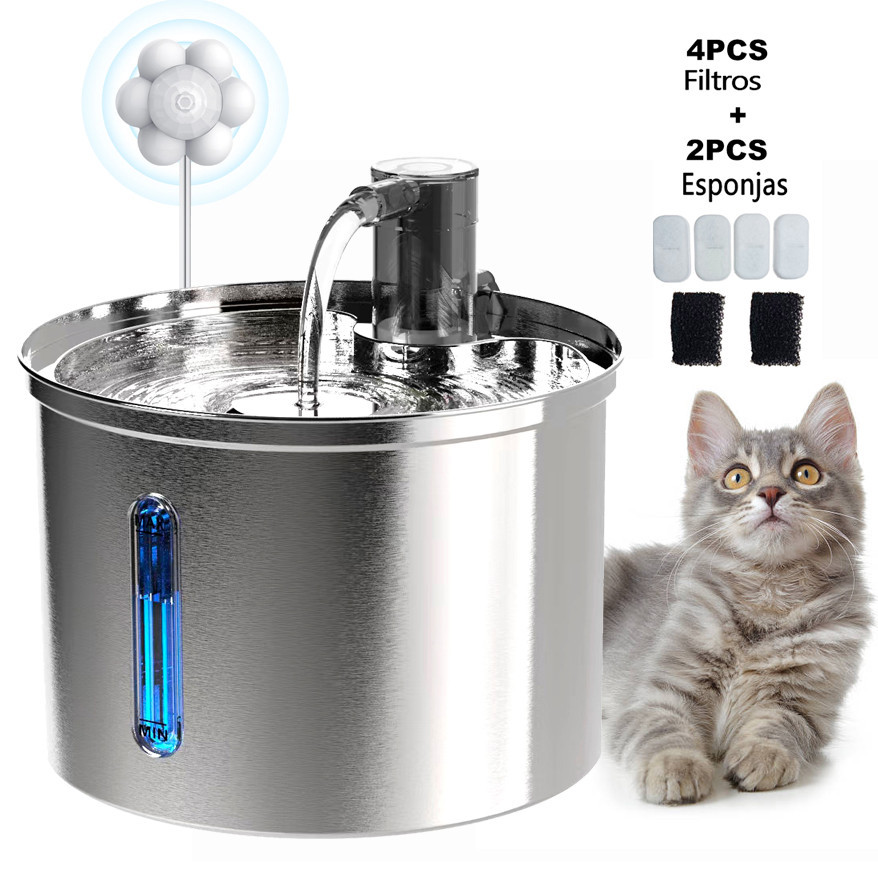 (múltipla escolha) Newpet Bebedouro Fonte de Água Automática para Gatos 3L Recipiente em Suporte inox com filtro -BiVolt