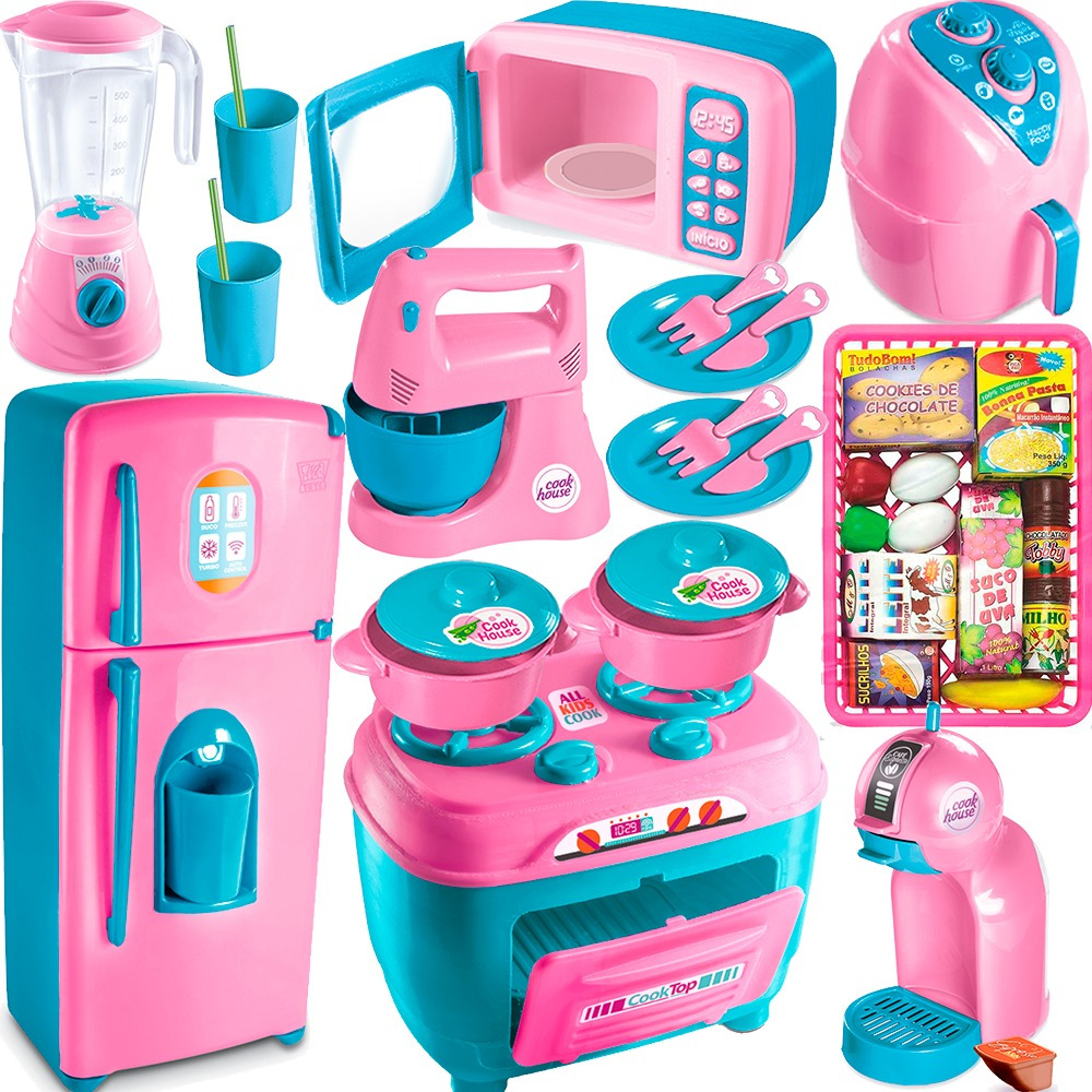 Kit Cozinha Infantil Faz De Conta Completo 32 Peças Geladeira Fogão Comidas Eletrodomésticos