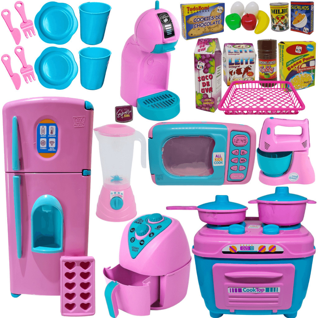 Kit Cozinha Infantil Faz De Conta Completo 32 Peças Geladeira Fogão Comidas Eletrodomésticos