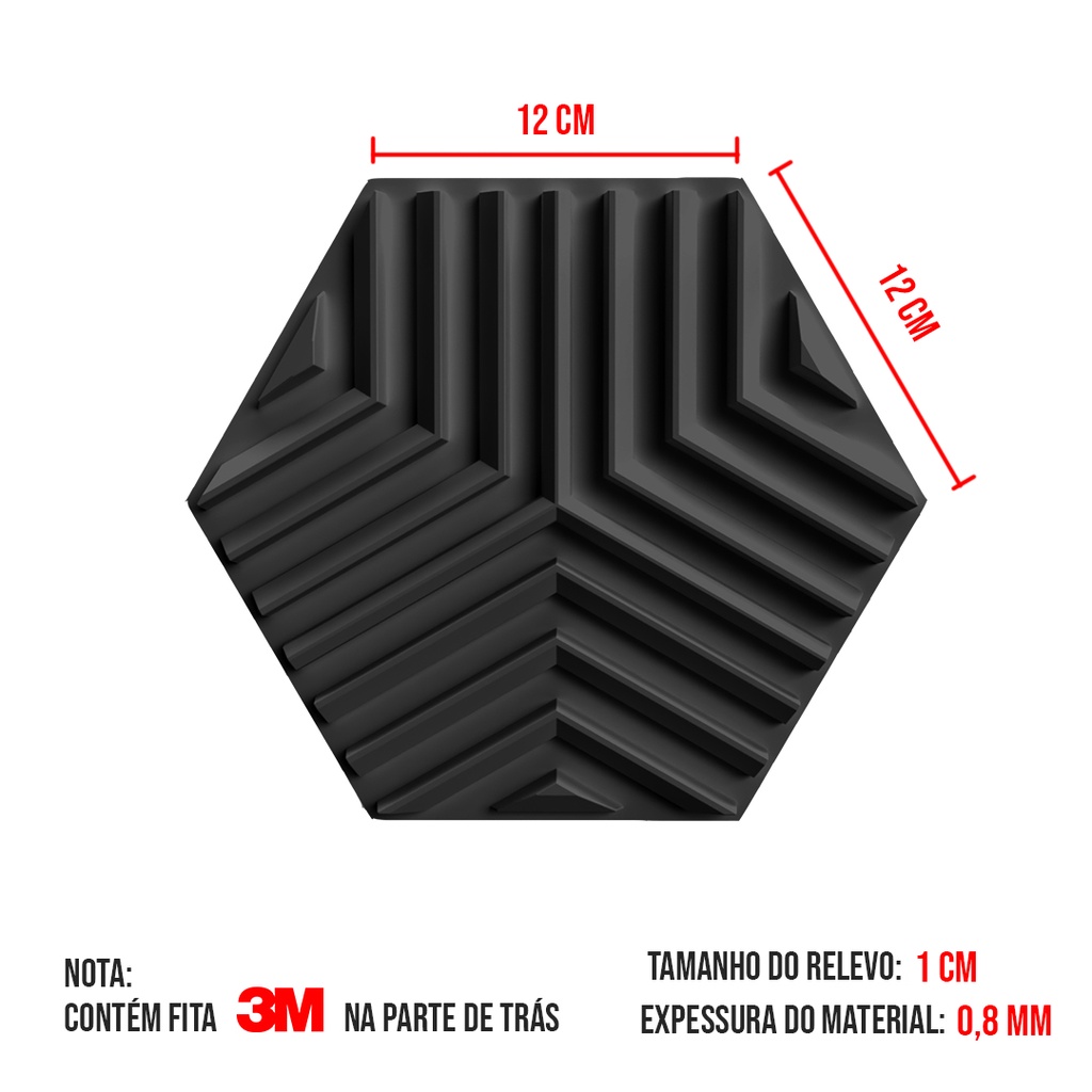 Kit 24 Painel Hexagonal Preto 3d Decorativo Adesivo 12 x 12cm