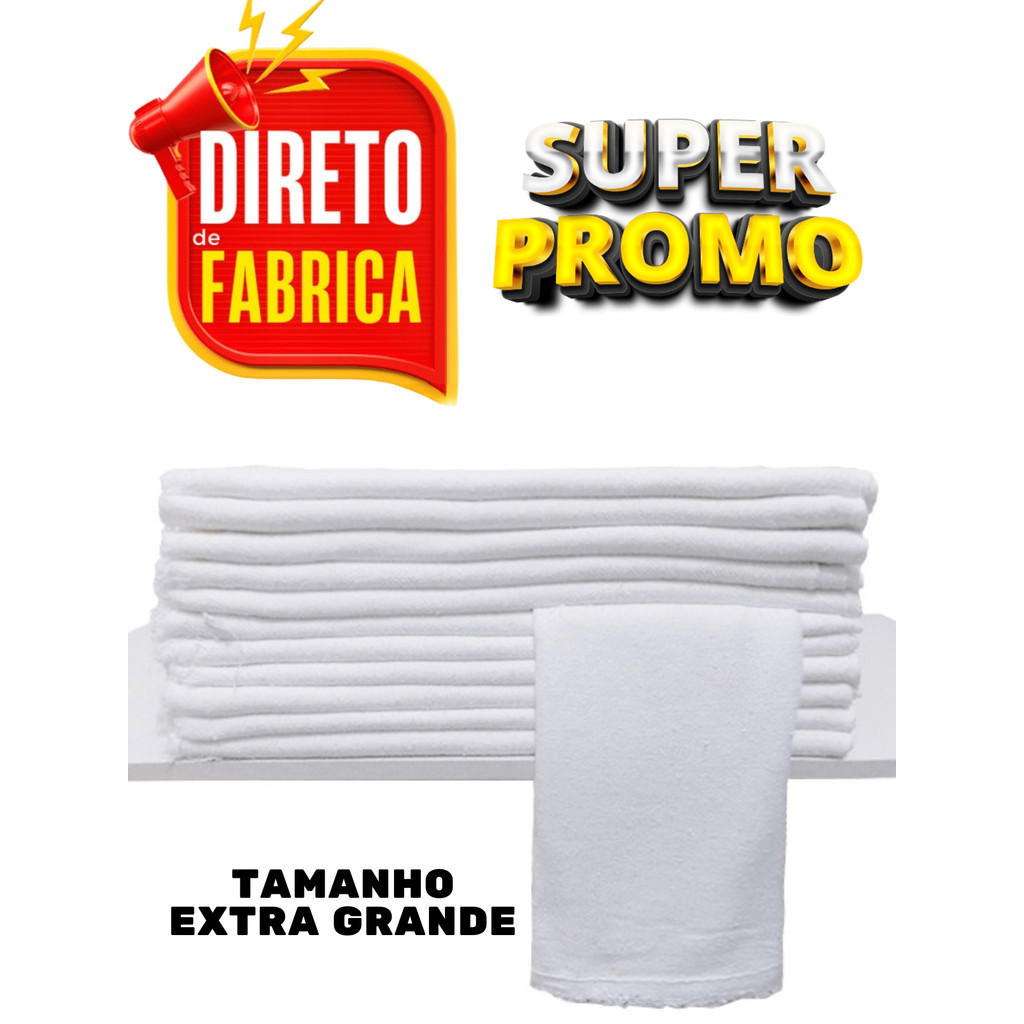 Pano De Chao Branco De Limpeza Grande Kit 10 Unidades Atacado 65 cm x 42 cm - MagazineMDS