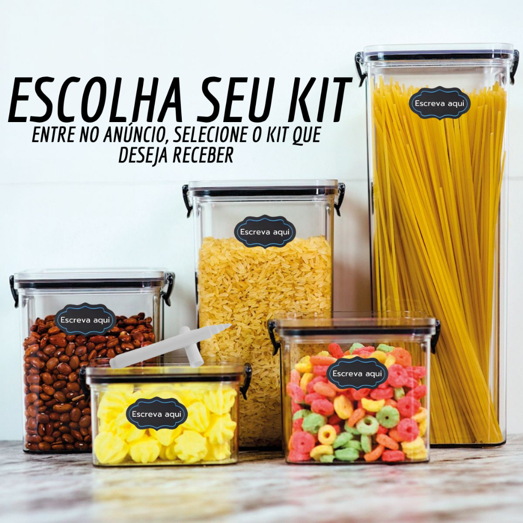 ESCOLHA SEU KIT Potes Herméticos Acrílico Quadrado Empilháveis com Trava e Alta Vedação + Caneta e Etiqueta