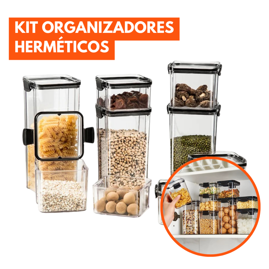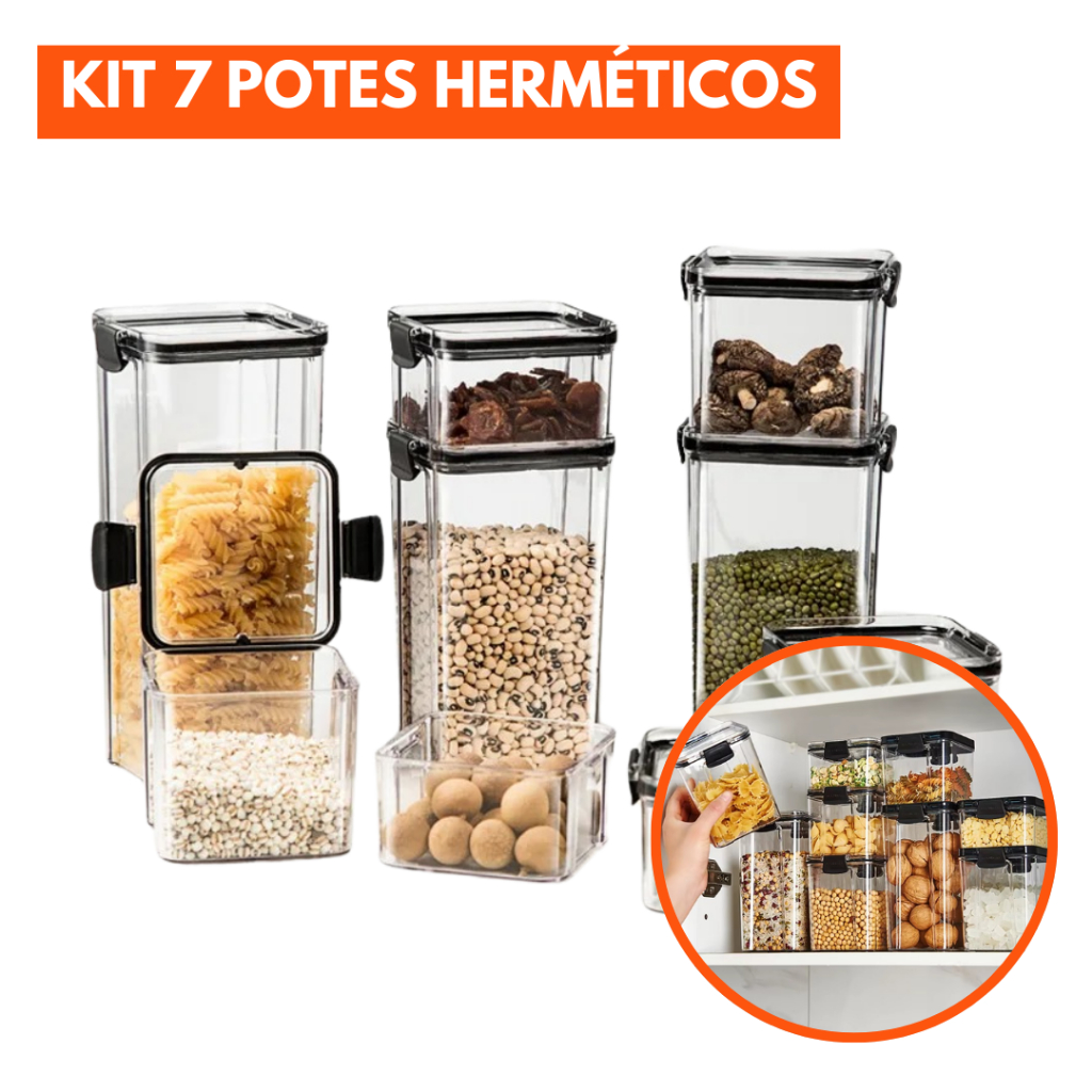 Kit 7 Potes Herméticos Empilhaveis Acrilico Organizador de Mantimentos com Trava e Vedação Premium