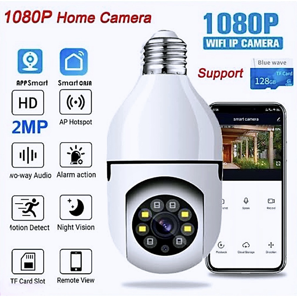Câmera Lâmpada WiFi 360° HD 6MP com Visão Noturna e Detecção de Movimento – Espie Pelo Celular!
