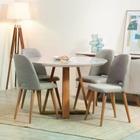 Conjunto de Jantar Mesa Redonda com Vidro Bennett 135 cm 4 Cadeiras New Drop - Natural c/ Cinza