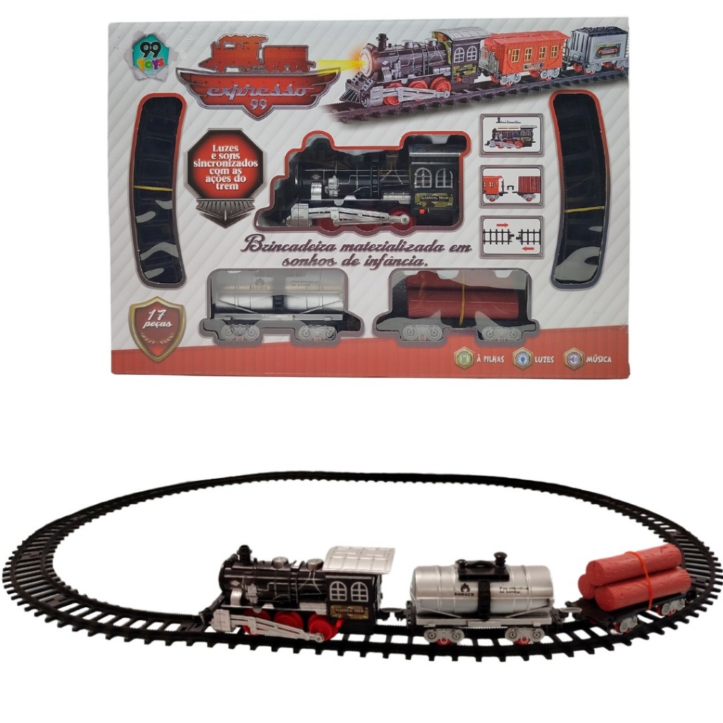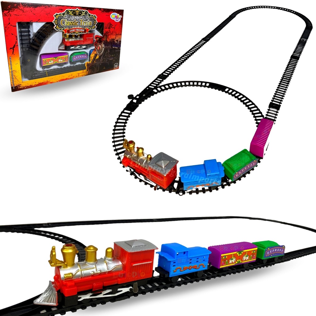 Pista Trem Clássico com Locomotiva e Trilhos Brinquedo infantil Trenzinho Ferrorama