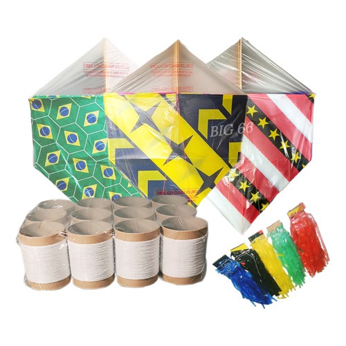 Kit Pipa Pacote com 25 Unidades e Linha para Pipa Nylon 500 Jardas
