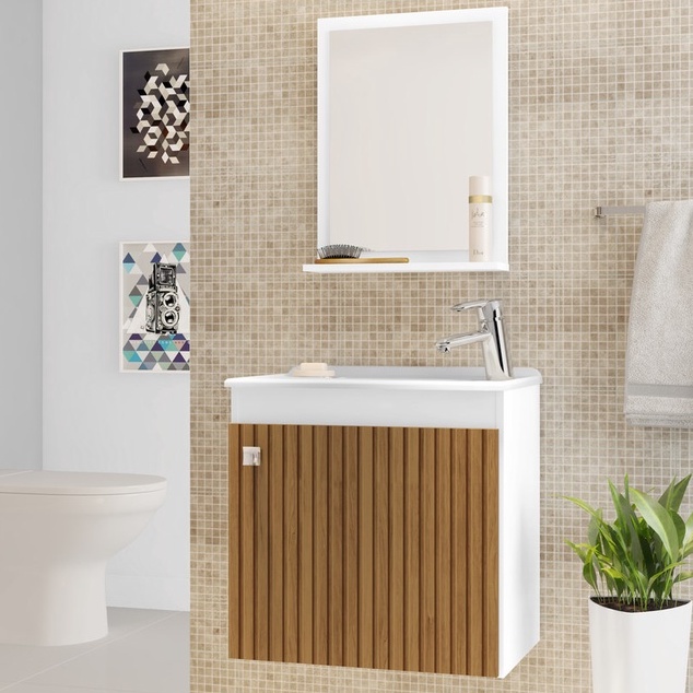 QUEIMA DE ESTOQUE - Gabinete Banheiro em MDF C/ Espelho e Cuba Siena