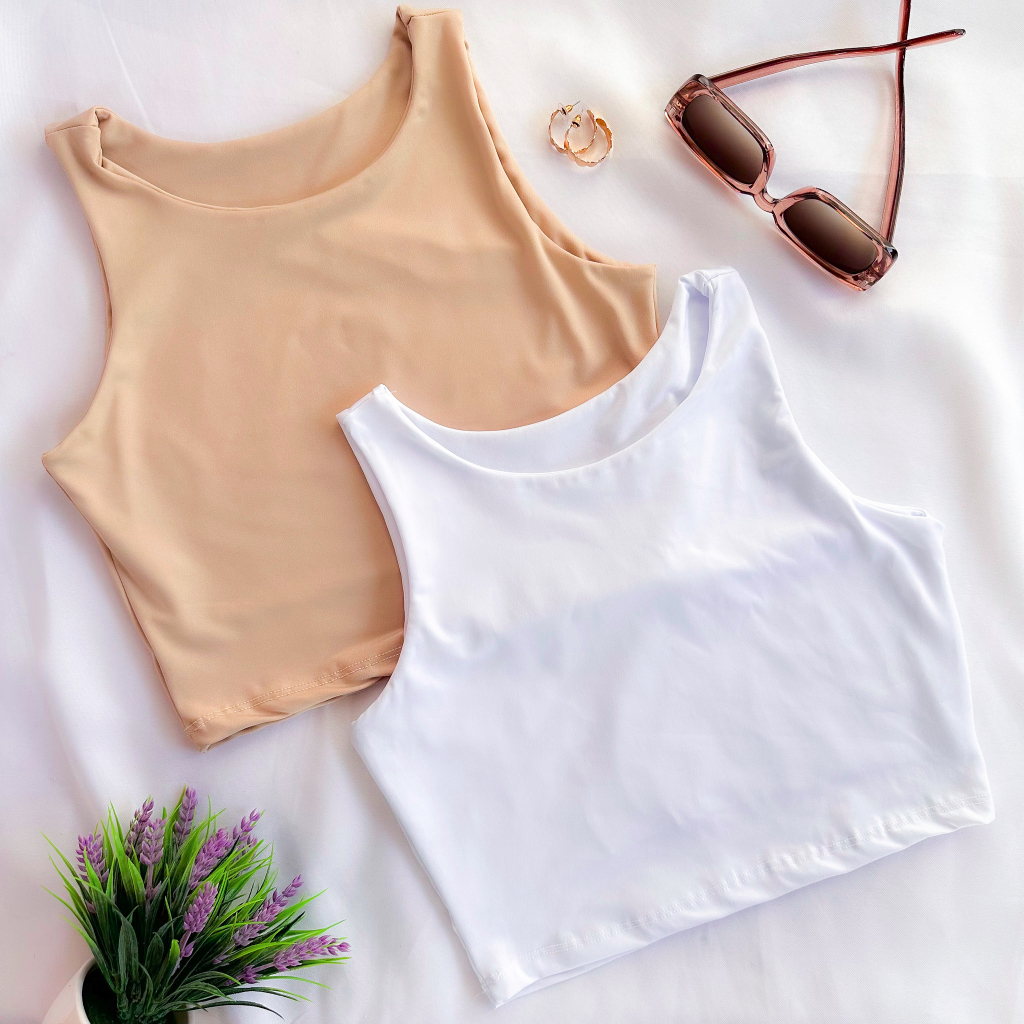Kit 2 Cropped Feminino Regata Básica Premium Suplex Verão Varias Cores Moda Blogueira
