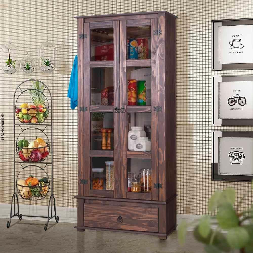 Armário Dispensa 2 Portas em Vidro Madeira Maciça Imbuia Jm Móveis