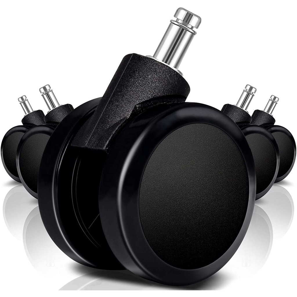 Rodízio Kit 5 Rodinhas Cadeira De Escritório Giratória Anti-Riscos Silicone e Baixo Ruido Ideal para Pisos de Madeira Preta