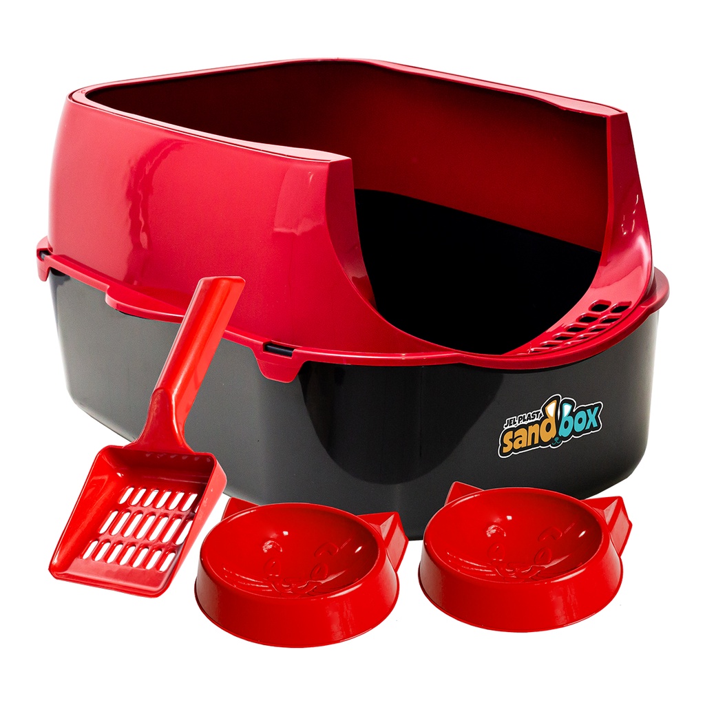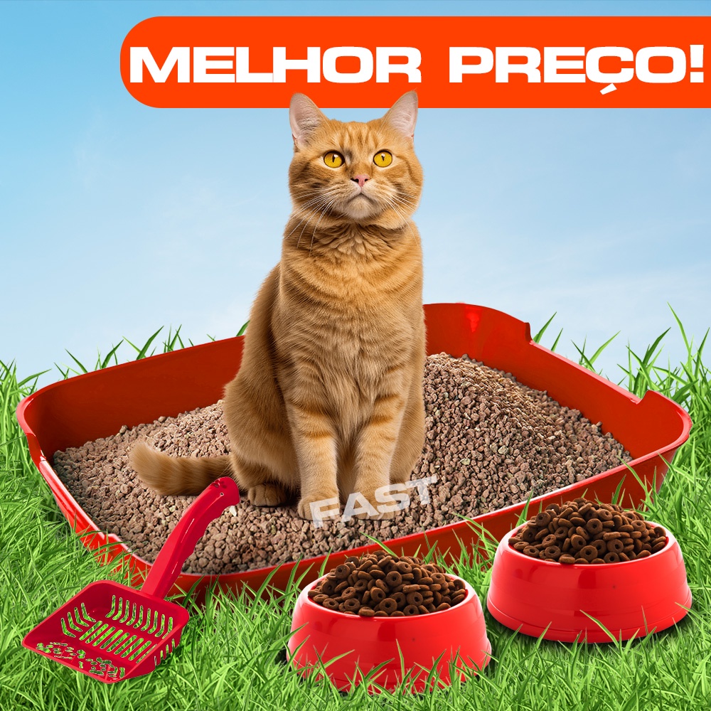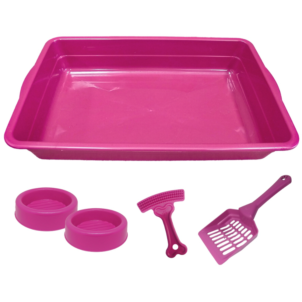 Kit Caixa de Areia para Gatos Bandeja Comedouro e Pá Higiênica Pet Mais Rastelo