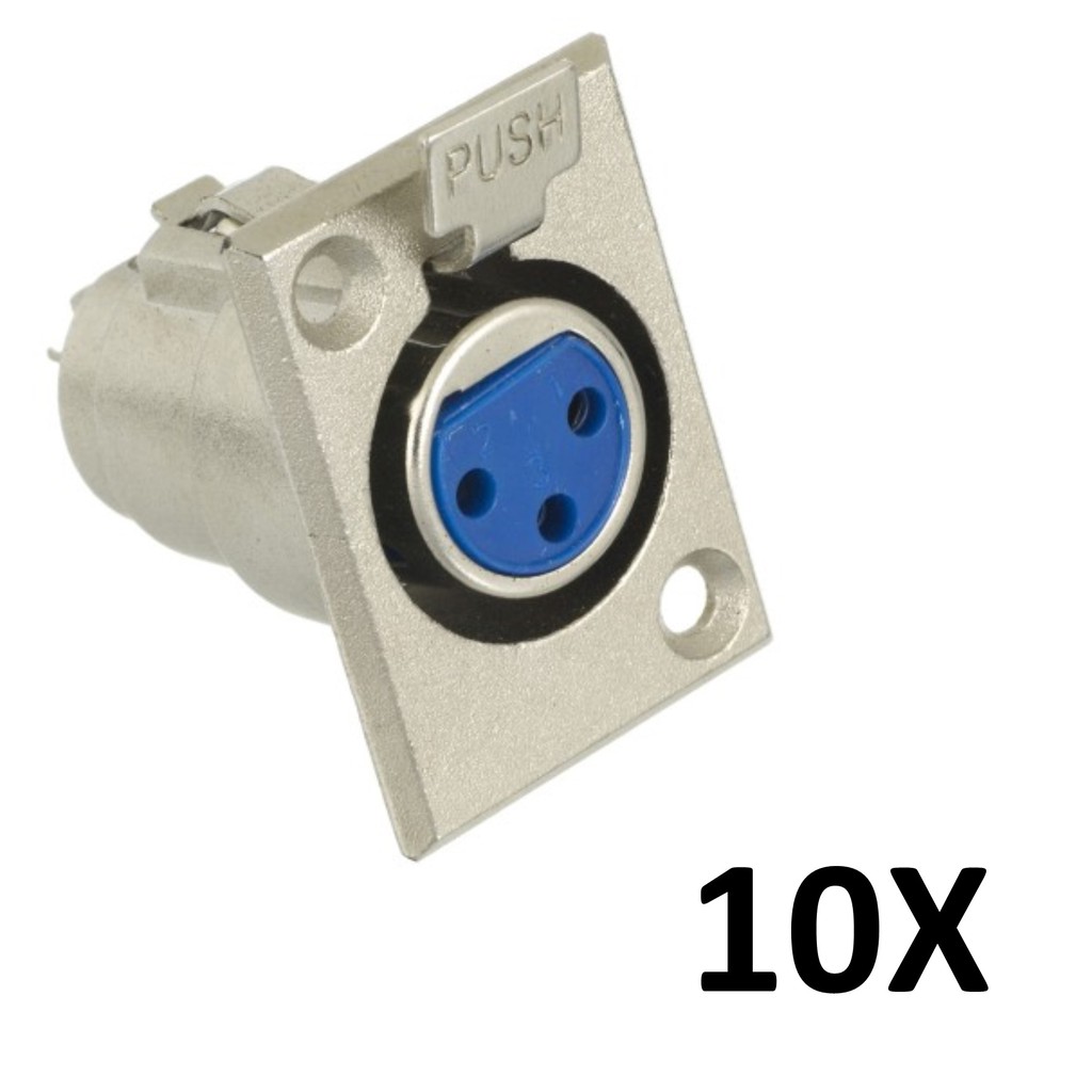 10X Plug Xlr Conector Canon Fêmea Painel Metal 3 Pinos (Pacote c/ 10 Pçs)