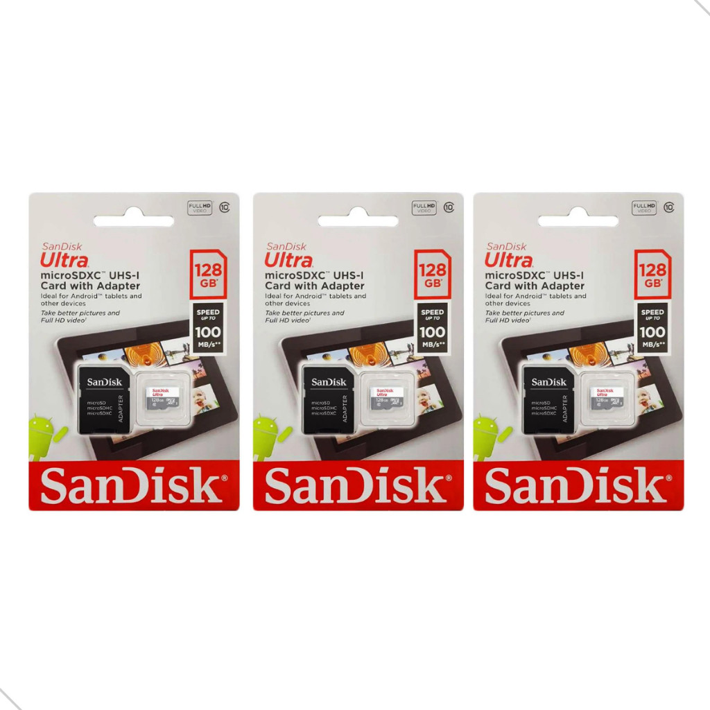 KIT 3 Cartão Memória Micro Sd Sandisk 128gb Classe10 Ultra