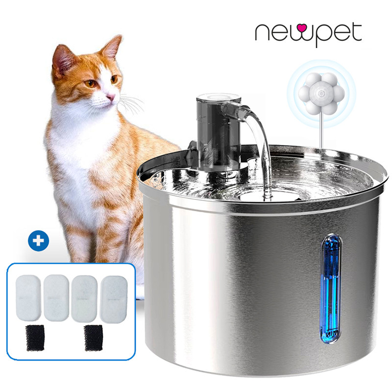 (múltipla escolha) Newpet Aço inoxidável Bebedouro Pet Sensor Inteligente Fonte de Água Para Gatos e Cães Automático Com Super Filtro - BIVOLT