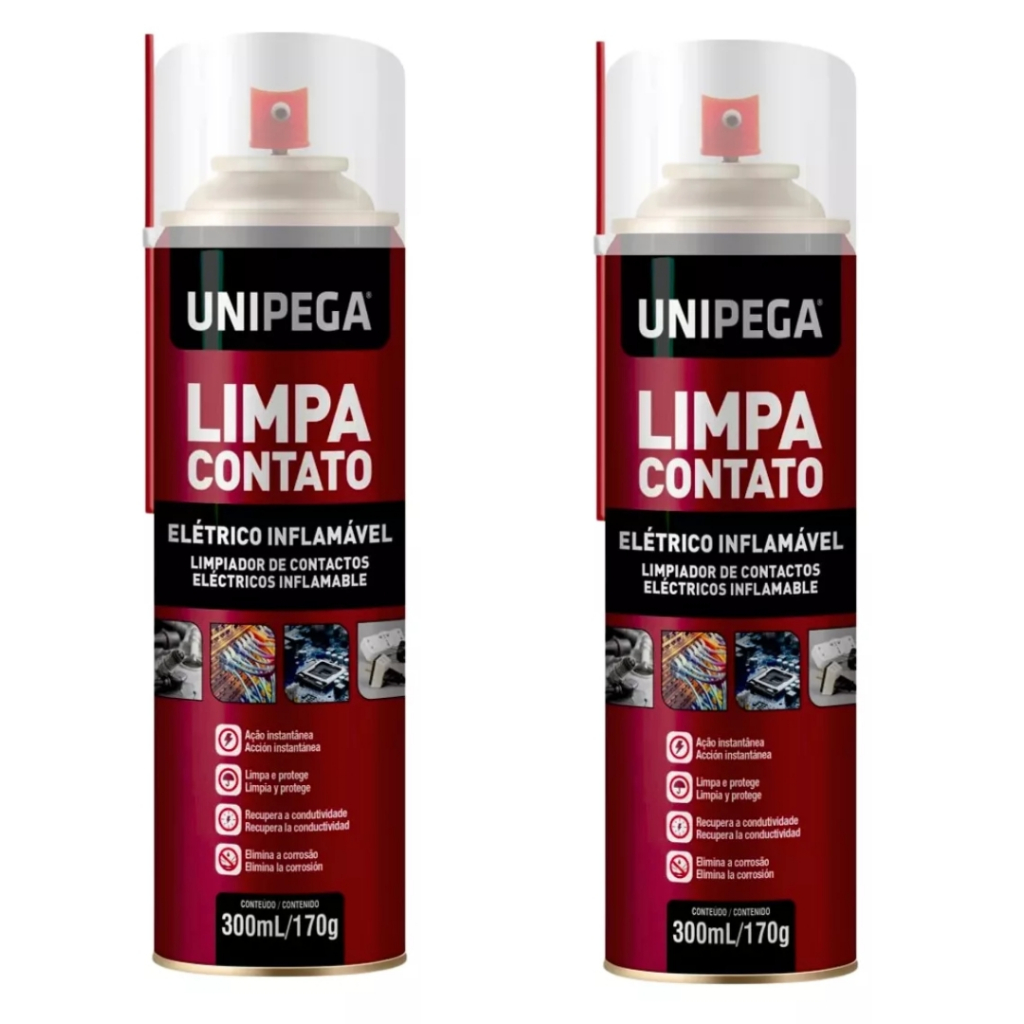 Kit 2 Limpa Contato Eletrico Eletronico Spray 300ml Unipega P/ Pc Pilha Bateria Placa de Circuitos Disjuntor Computador