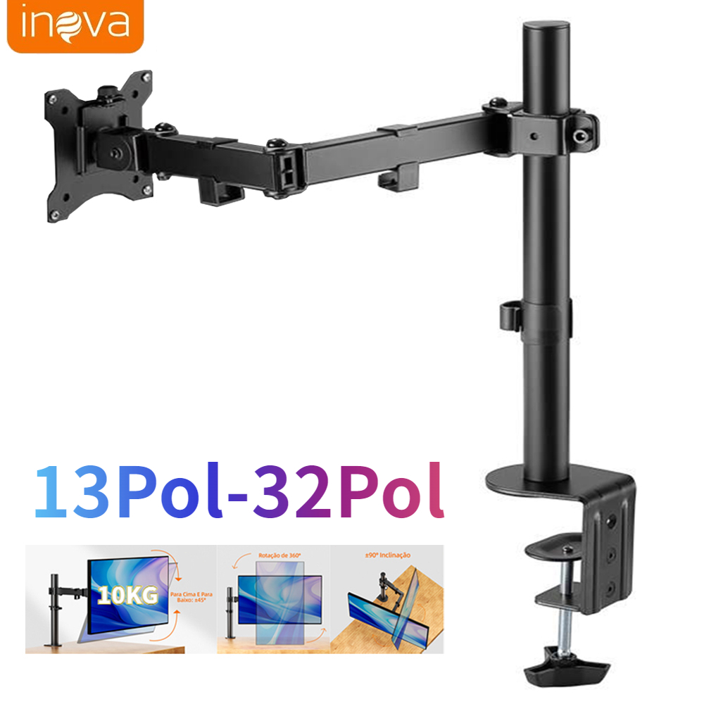 Inova Suporte Para Monitor de 13" a 32" polegadas Giratório de 180° com dobradiças de mesa em liga para TV/monitor preto