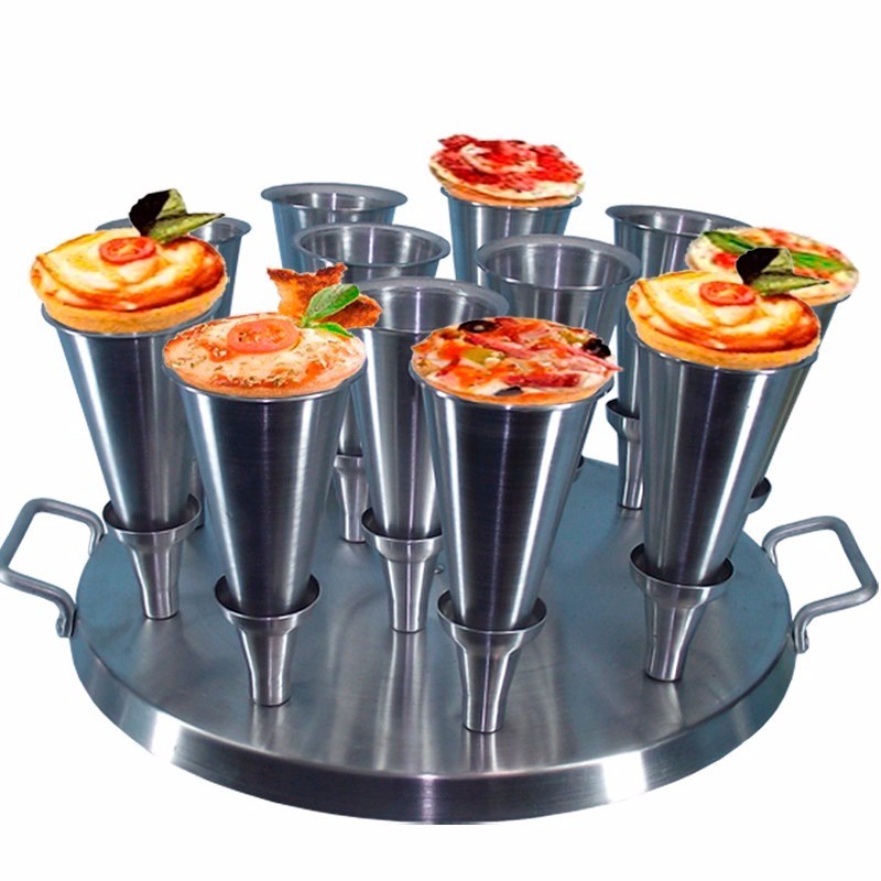 Kit 12 Forma Pizza Cone + Base Para Assar Com Aro Modelador