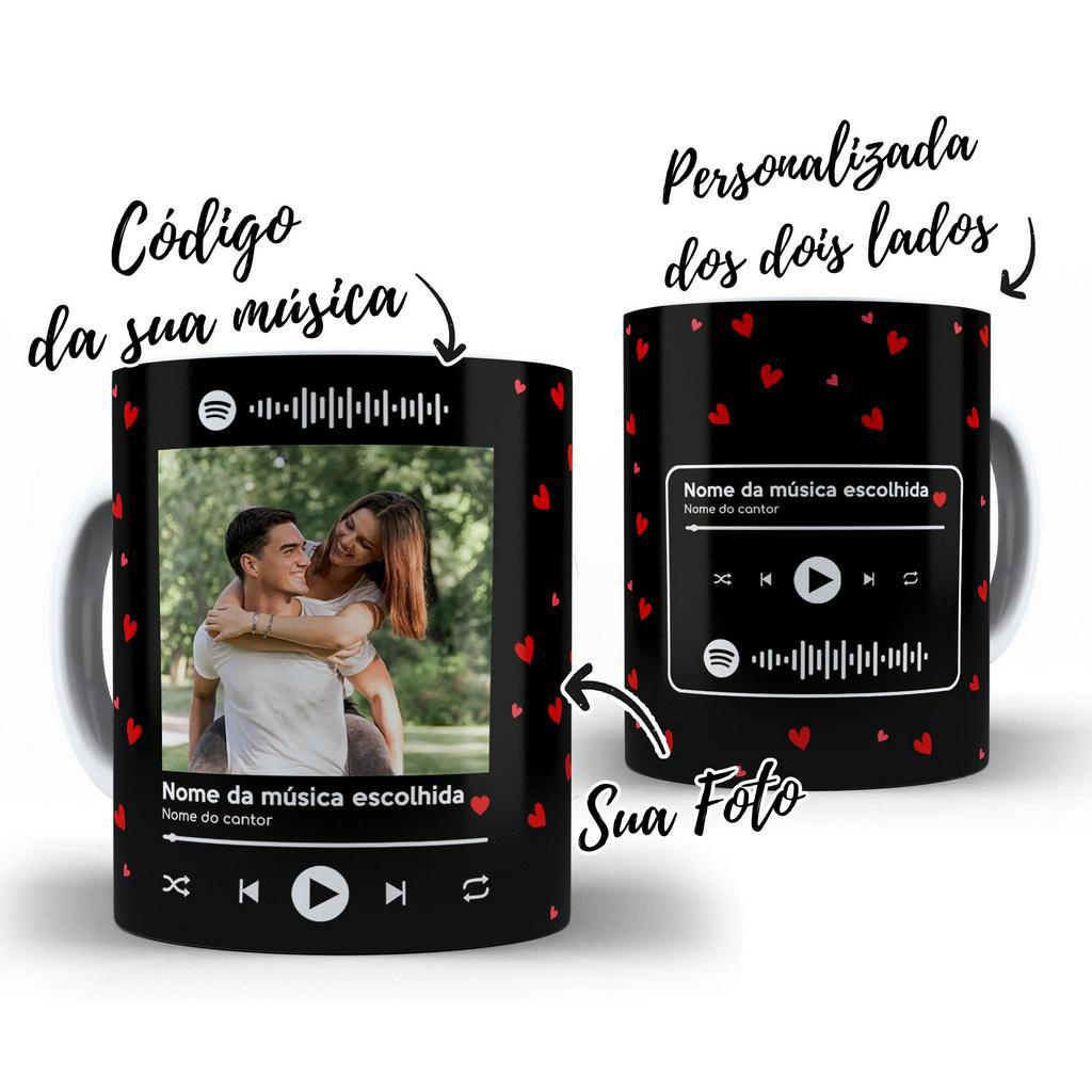 Caneca personalizada dia dos namorados com data, nome, foto e musica